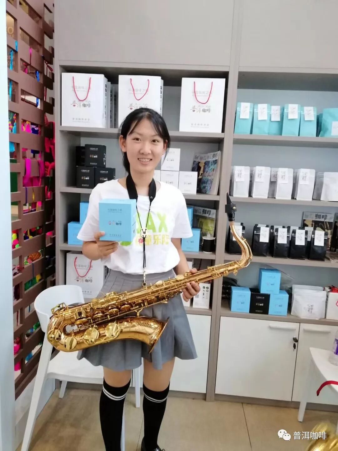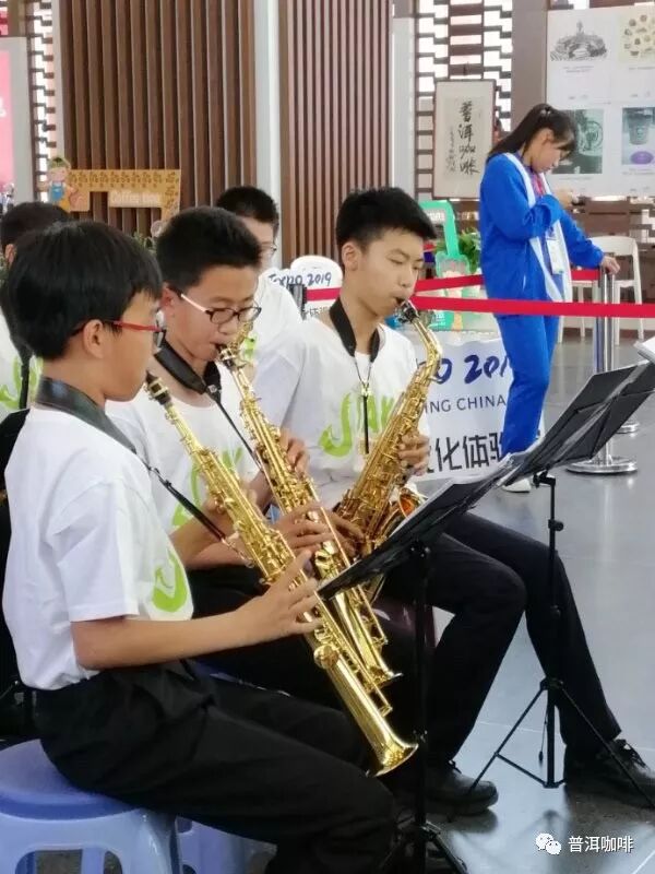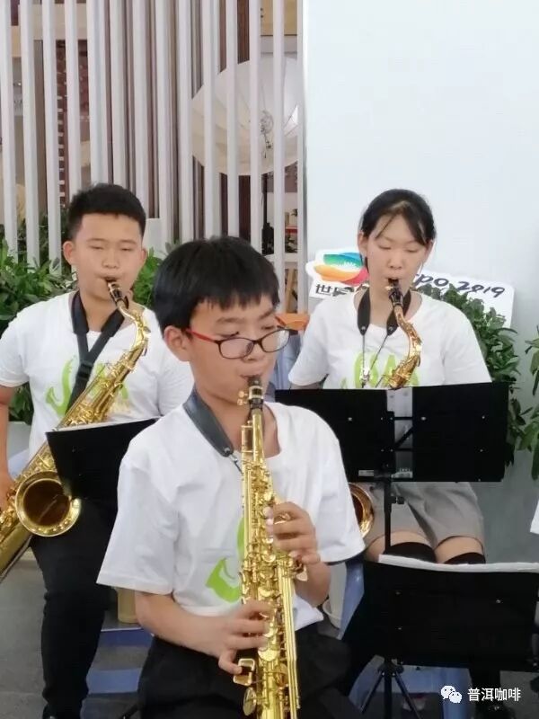 孩子们现场演奏了18首萨克斯乐曲,吸引了现场观众驻足观看,他们还主动推介馆内展出的普洱咖啡产品,为普洱咖啡的宣传助威加油。