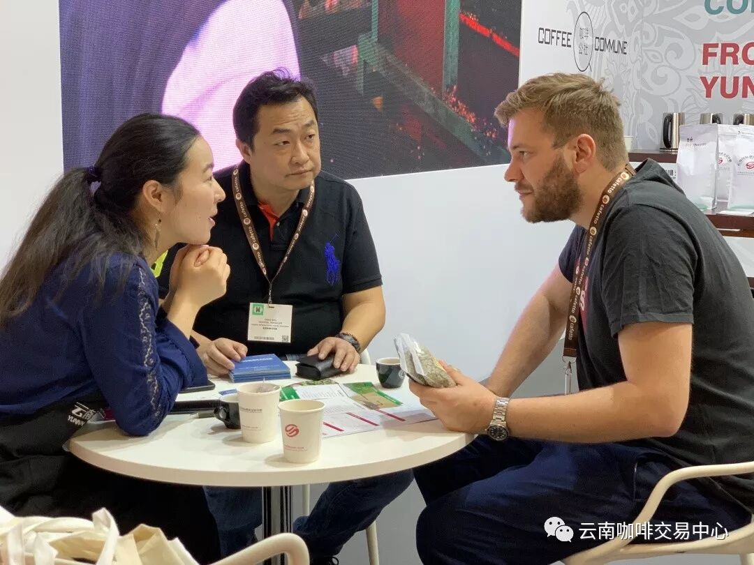 展会期间前来洽谈的客户对中国咖啡、云南咖啡展现出了极大的兴趣。在品尝了我们在现场出品的两款SOE后,都觉得云南咖啡甜度高、口感醇厚、带有坚果、巧克力以及花香等特点。现场为客户准备的精品、优质、商业三个等级的咖啡也满足了各个客户群体的需求,不同品质的咖啡,都能够在欧洲市场享有广阔的发展空间。