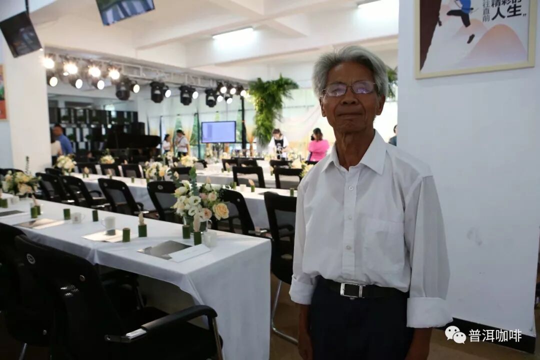 在小凹子咖啡庄园设置的展台,与会领导和咖啡爱好者们与被称为“普洱咖啡之父”的小凹子咖啡庄园主廖秀桂老先生亲切交流,廖秀桂老先生介绍了小凹子咖啡值得推荐的产品。