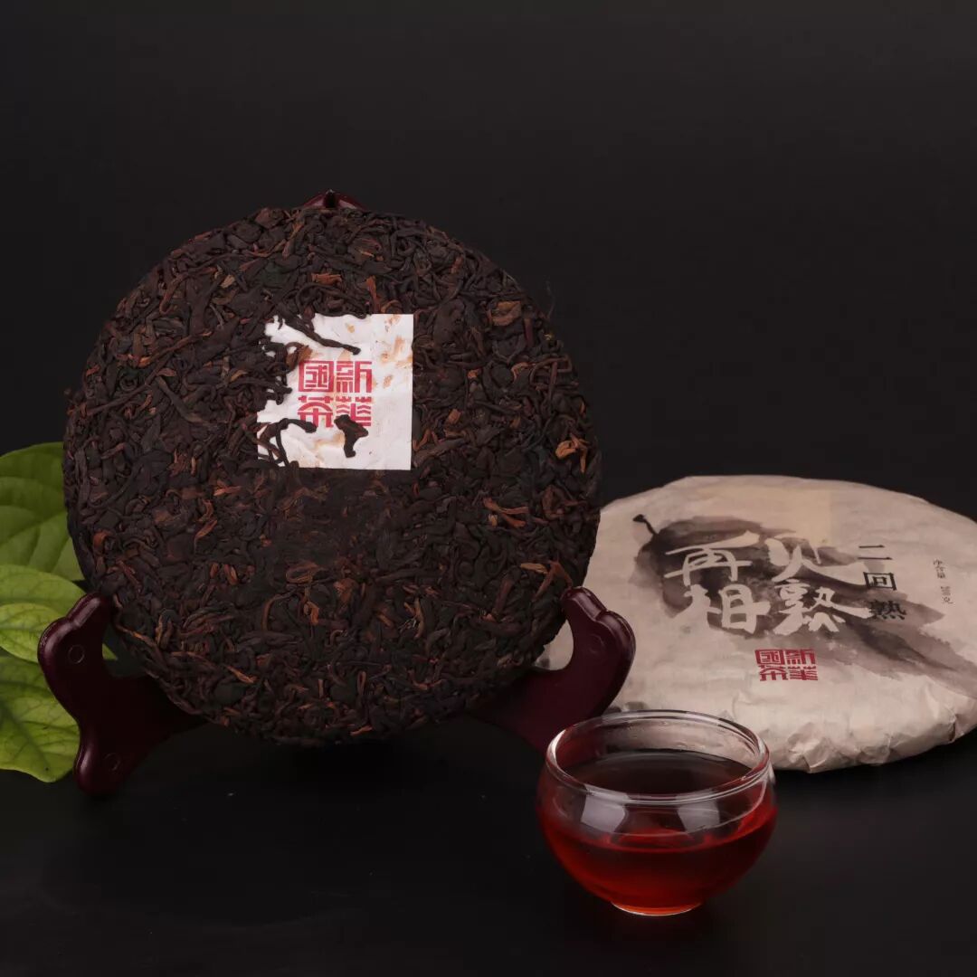 二回熟:饼形圆润,色泽褐红,条索肥厚,汤色红浓透亮。