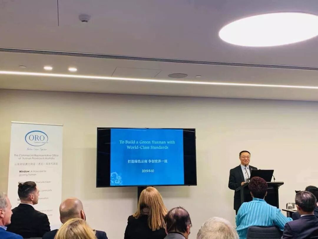 在云南省驻澳大利亚(悉尼)商务代表处主办的云南省绿色食品推介会上,云南省驻澳大利亚(悉尼)商务代表处主任李曲波表示,澳大利亚和云南省有着长期的贸易往来,推介会旨在向澳大利亚介绍云南省绿色食品发展情况。希望借此次交流活动,促进澳大利亚和中国云南省双向投资、贸易和服务。