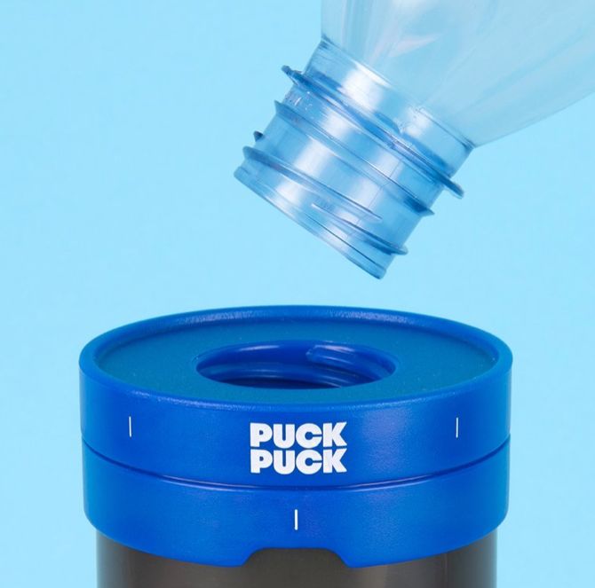 PuckPuck自身容量500毫升,PuckPuck的通用螺纹设计可以将特定类型的矿泉水瓶子与PuckPuck配对,该公司推荐依云蒸馏水瓶。