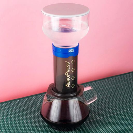 在爱乐压上放置一个PuckPuck配件来实现制作冰滴咖啡。
