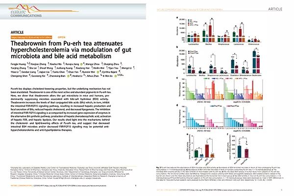 《Nature》子刊《Nature Communications》刊发贾伟教授及团队完成的关于普洱茶降脂机制的研究