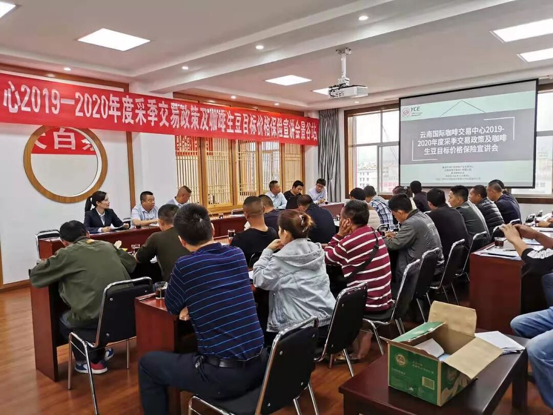 2019年11月11日,普洱市茶叶和咖啡产业发展中心、云南国际咖啡交易中心、普洱咖啡协会、中国经济信息社云南中心、中国人民财产保险股份有限公司云南分公司启动第二轮2019-2020年度采季交易政策及咖啡生豆目标价格保险宣讲会。